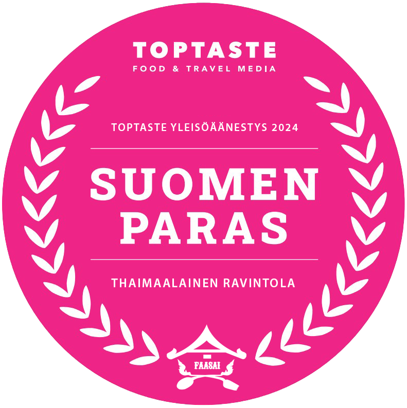 TOPTASTE – Food & Travel Media – on valinnut FAASAI-ravintolan Tampereelta Suomen parhaaksi Thaimaalaiseksi ravintolaksi, kun heidän lukijoiltaan kysyttiin mistä löytyy Suomen paras thaimaalainen ravintola.