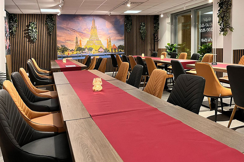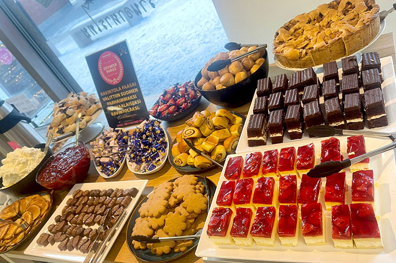 Perinteinen Faasain thaimaalainen buffet sisältää reilun salaattipöydän, maistuvan keiton, sekä ennen kaikkea herkullisen ja runsaan buffet-pöydän, josta löytyy maukkaiden lihojen lisäksi myös maittavia kasvisvaihtoehtoja. Jälkiruoaksi voi nauttia kahvin tai teen kanssa itsetehtyjä leivonnaisia ja lettuja sekä myös jäätelöä.
